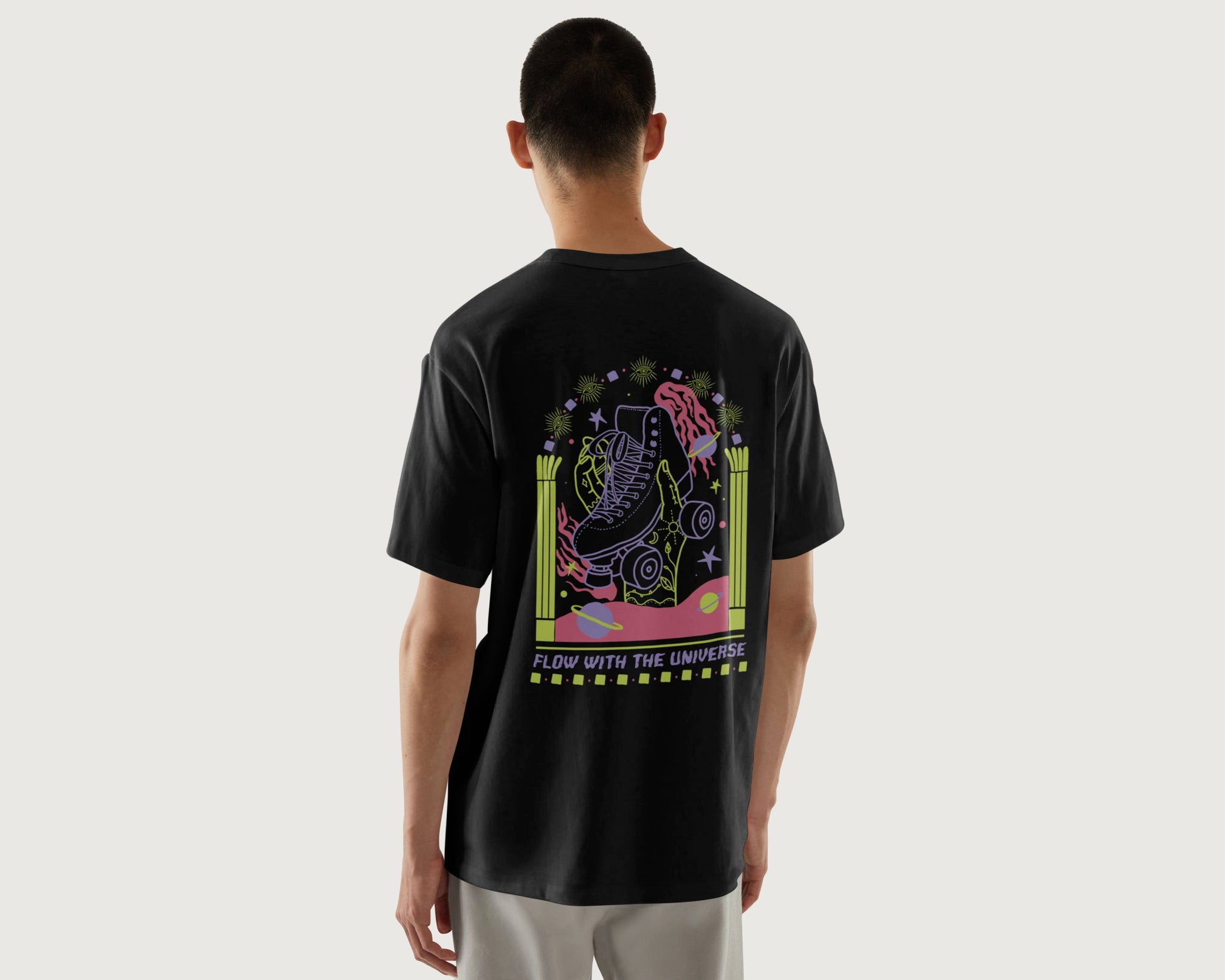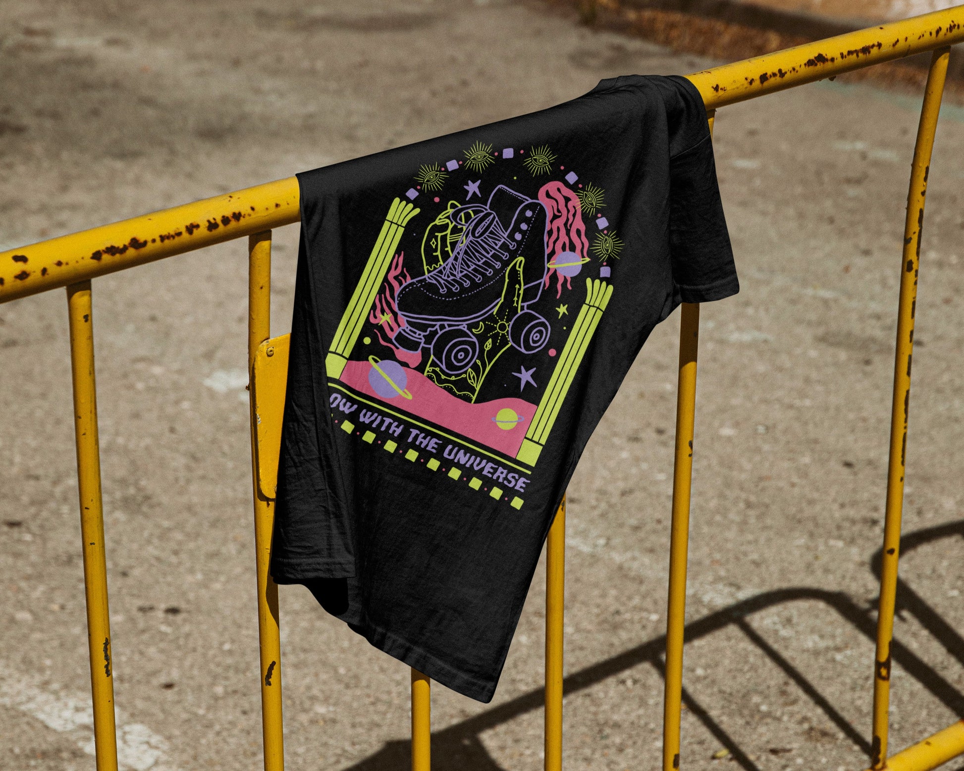 Step into the cosmos with the Flow With The Universe tee — a piece that celebrates motion, freedom, and the energy of roller skating.