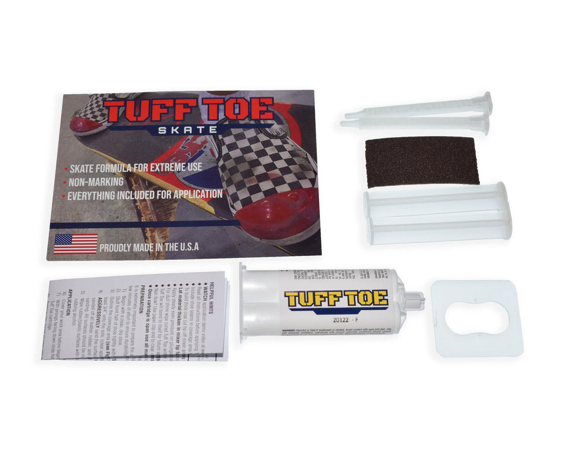 Tuff Toe Skate Protection is an abrasion, chemical, and water resistant polyurethane adhesive specially designed to provide long-term protection for your skates. According to the manufacturer, Tuff Toe will extend the life of your shoes or skates by up to 3X.