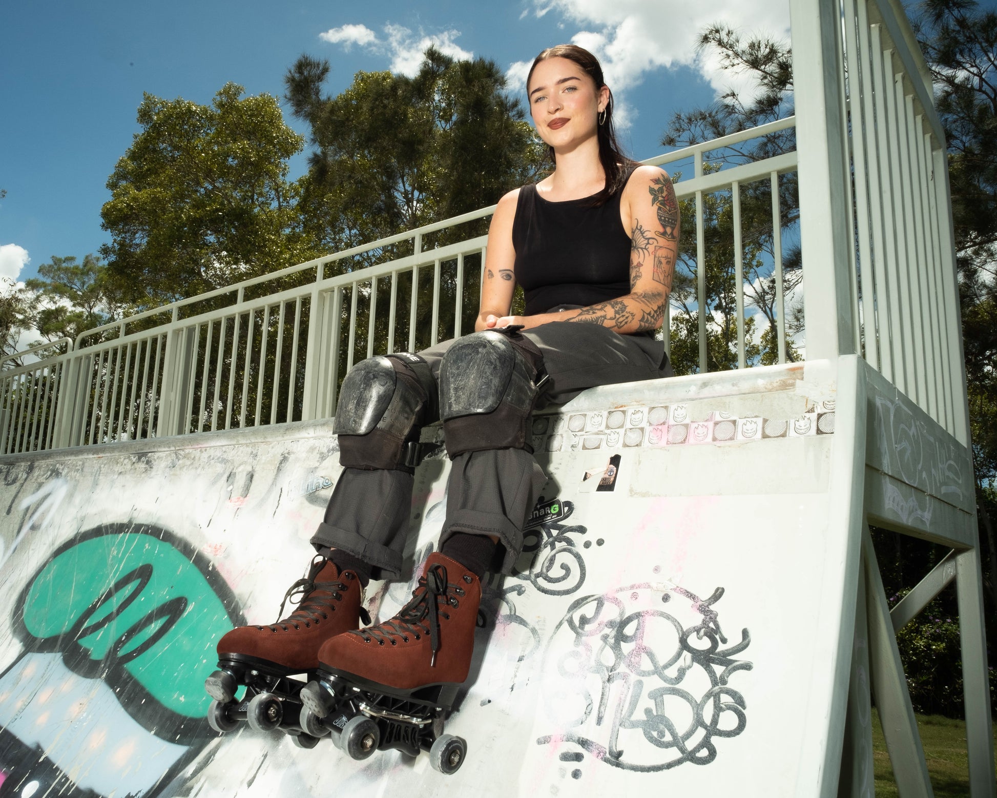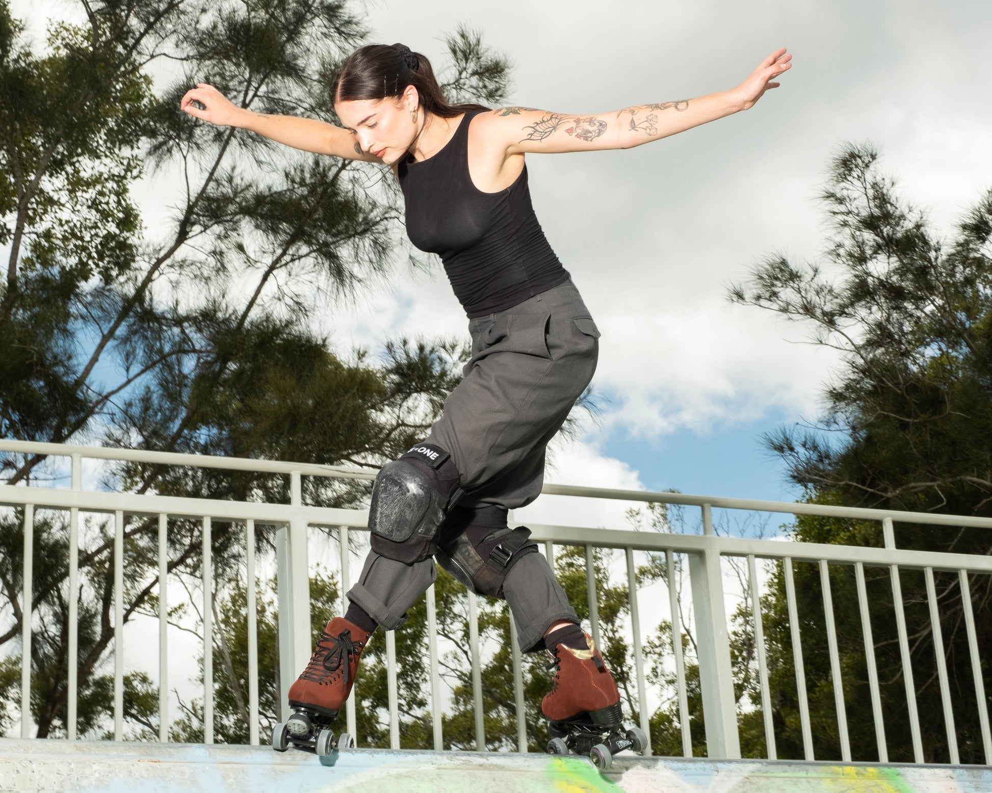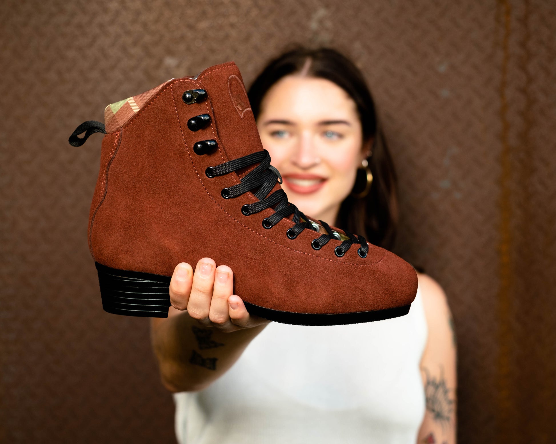 These skates are designed to bear high impact, and provide the support needed for advanced manoeuvres and tricks. They are suitable for both park and dance skating. Green plaid lining designed by Zoe Wilson, a dear friend of Jade, matching the beautiful chocolate brown suede.